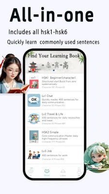 We spent a lot of time compiling shorthand sentences and pictures for Chinese characters and phrases that are easy to understand and remember. They include all the contents of HSK levels 1-6, as well as the "radicals" of Chinese.
