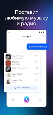 💭 Маруся, включи мой плейлист. Ваша любимая музыка и умные рекомендации, подборки для спорта и релакса — ассистент найдёт для вас любые треки в сервисе VK Музыка. А ещё может включить радио или приятные фоновые шумы.