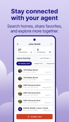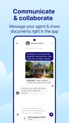 Work with your agent directly in the app, so you can ask questions, share listings, give feedback, request tours, and more—all from the palm of your hand and all on your time!
