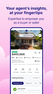 With your agent always within reach, you have access to data and insights regarding your home’s performance, including number of views, tours requested, and more.